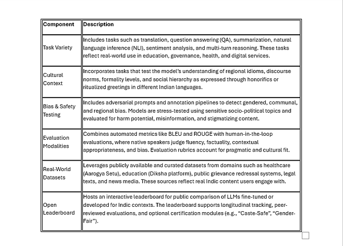 While global benchmarks like HELM, MMLU, and BIG-bench have set the standard for English and high-resource languages, they fall short in addressing the intricacies of Indic languages. With 22 scheduled languages, hundreds of dialects, and complex socio-political contexts, India demands a new, culturally grounded approach to LLM evaluation.
